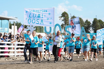 Kuninkuusravien aluksi rataa kiersi Lumi-Oosan taustajoukoista koottu fanikulkue. Kuva: Maisa Hyttinen