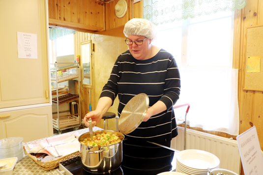 Keittiön puolelta leijailee herkullinen makkarakeiton tuoksu. Soppakauhan varressa oleva nuorisoseuran messuvastaava Minna Murtoperä kertoo, että naistenmessuja on järjestetty Vihannissa jo kymmenen vuotta ja joka kerta kävijöille on tarjolla maksua vastaan maittava ruoka. Joulun aikaan pidettävissä joulumyyjäisissä tarjolla on yleensä karjalanpaistia kaikkien jouluun liittyvien laatikoiden kera.