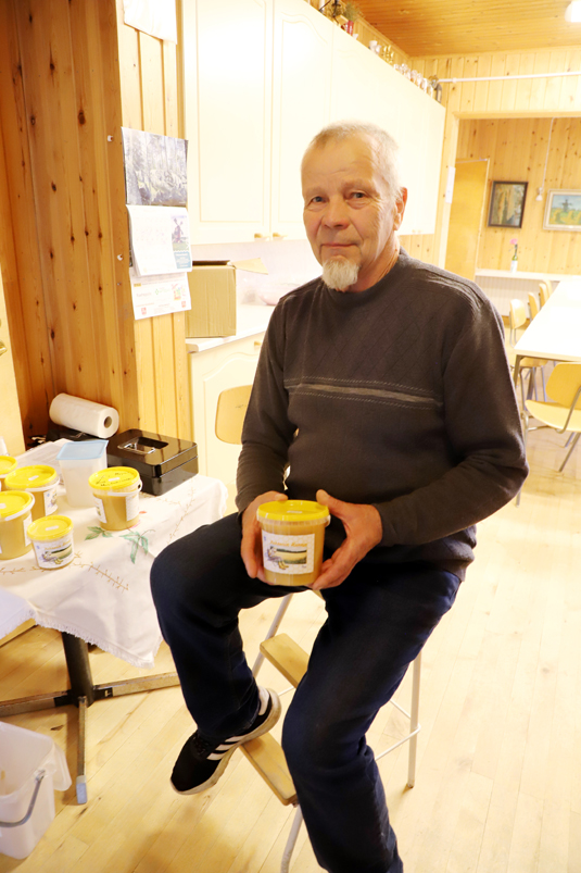 Nuorisoseurantalon eteisestä kuuluu kauaskantoinen miehen ääni. Puhuja on Tauno Impola, joka on myymässä siskonpoikansa Jani Orajärven valmistamaa hunajaa. Kyseinen Kuhnurin mehiläistuote on perustettu vuonna 2018 Orimattilassa. Tauno Impola kertoo olevansa ensimmäistä kertaa tuote-esittelijänä ja hyvin mies on työtehtävänsä omaksunut. Naistenmessuja on takana vain parisen tuntia, ja hunajapurkkeja on mennyt kaupaksi jo kymmenkunta.