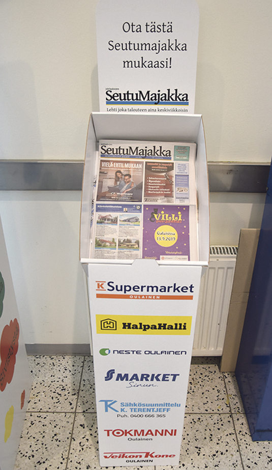 Seutumajakat jaetaan Tojapak Oy:n valmistamiin tyylikkäisiin ja ekologisiin telineisiin välittömästi, kun lehdet ovat saapuneet Kajaanista painosta Oulaisiin.